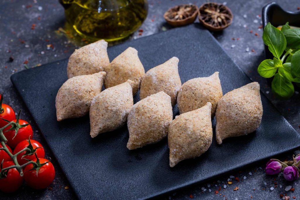 لحم عجل , بصل ,سبع بهارات ,برغل وصنوبر جاهزة للقلي