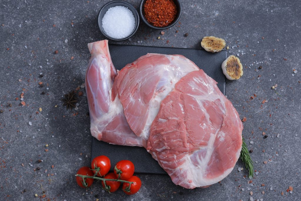 كتف غنم متبل مع لبن وزبدة وملح وبهار أسود وخل أبيض وبهار حلو ملفوف بورق زبدة وورق الألمنيوم