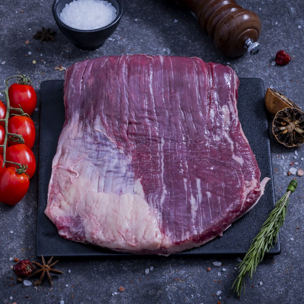 Angus Flank Steak – Whole Cuts with Fat: Full-flavored steaks with natural fat, great for slicing and grilling