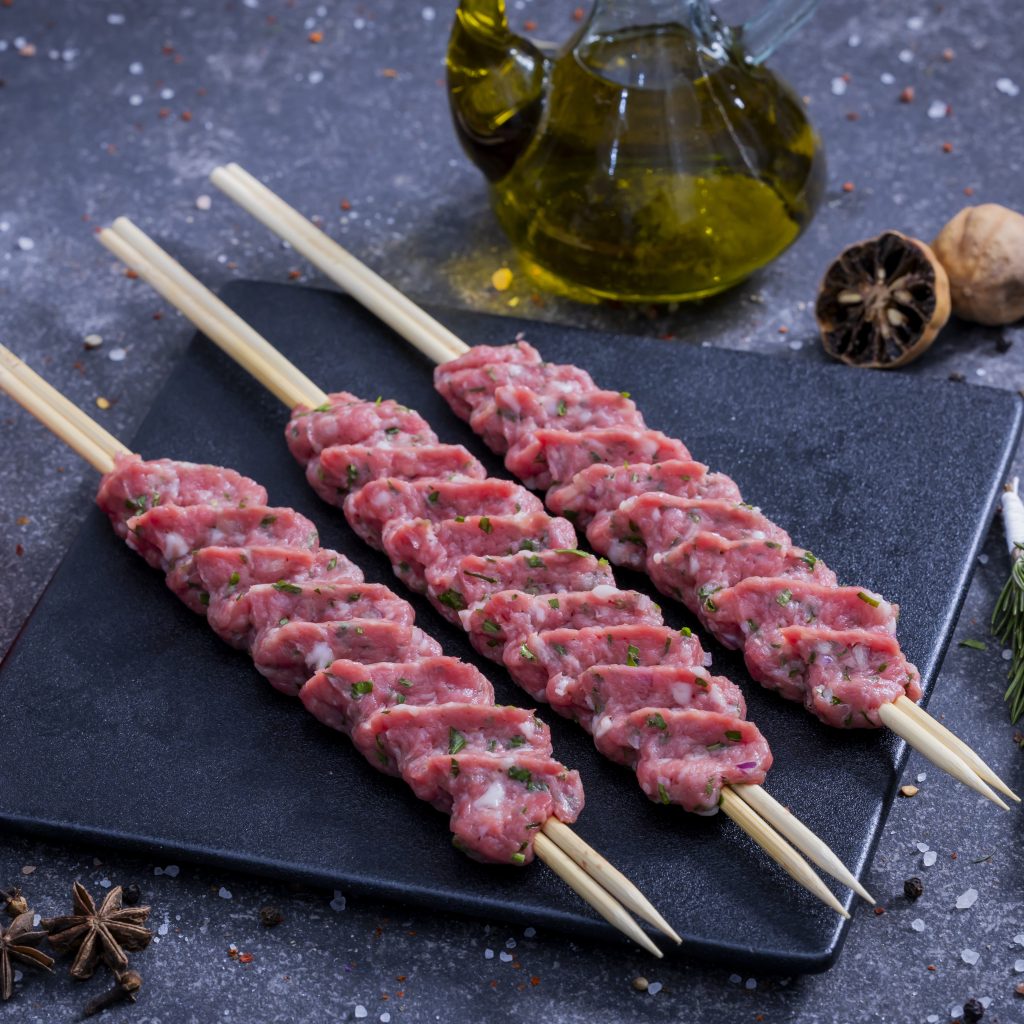 Lamb Mince Skewers – Mixed with parsley, onion, salt, black pepper, and sweet pepper, shaped on skewers