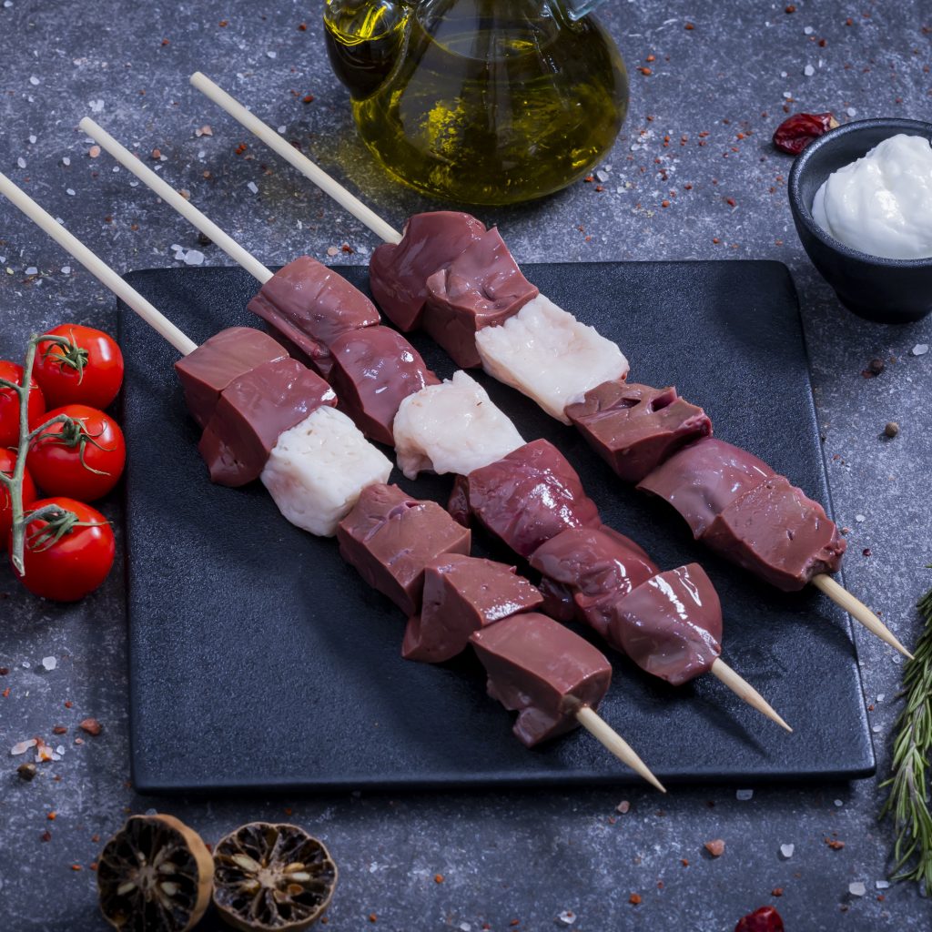 Lamb Liver Cubes Skewers – Marinated with salt and spices.