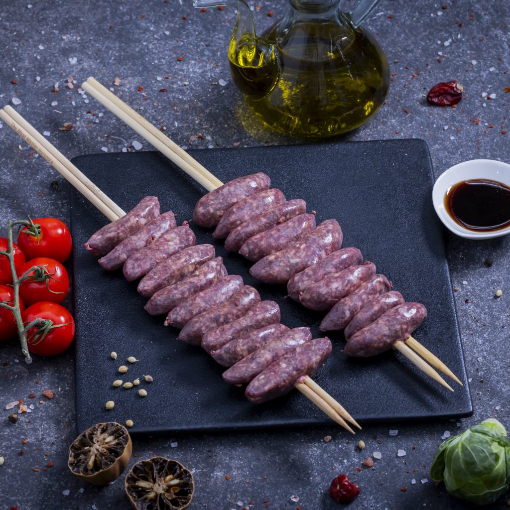 Mixed Beef & Lamb Mince Skewers – Marinated with special makanek spices, pine nuts, and white vinegar